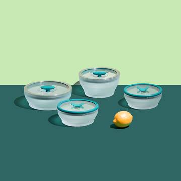 Putting the lid over warm food with the knob pushed down creates a safe, low-level vacuum as the dish cools, which keeps your food fresher for longer.